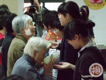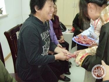 活动过程暖意浓浓又不失活泼。藏族同学演唱了歌曲,还与老人们及汉族同学们共舞。随后,又进行了拼“寿”字比赛,同学们很快速,老人们很认真,还一起斟酌怎样摆才好看。最后,同学们和老人们共品桂花酒,吃重阳糕。