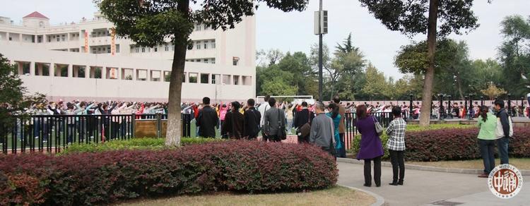 上图24日下午我校副校长刘忠保陪同听课的镜头,下图25日上午学员观摩高三和高一年级广播操。