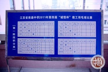 南通中学工会第四届“诚恒杯”教工羽毛球赛于10月19日全天在南校区崇问楼5楼羽球馆举行,全校16个工会小组共组成13支球队参赛,每支球队4男3女共7名运动员上场,参赛运动员总数达91人,占本校全体工会会员总人数的近2/5。