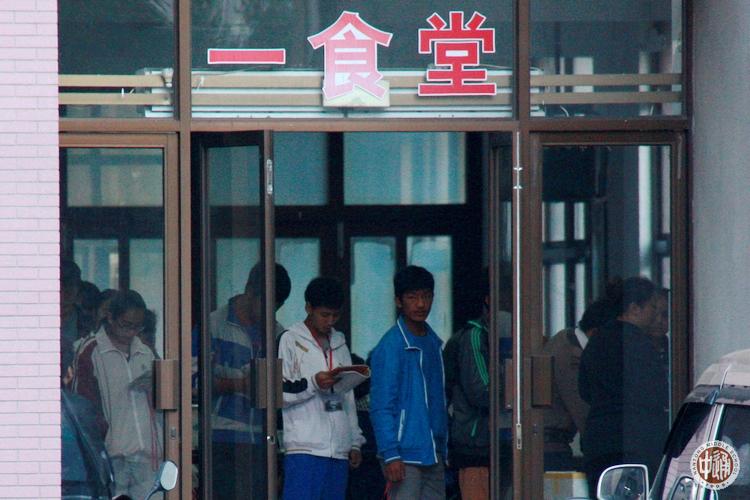 下图是学生食堂早餐时间,用功的西藏生一边排队还一边读书。