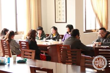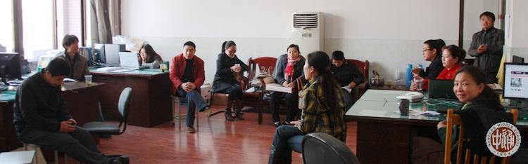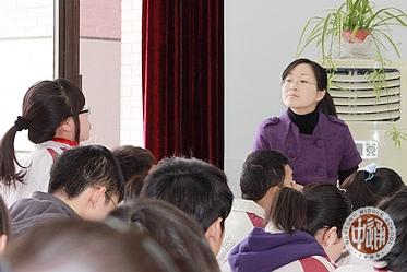 全部公开课观摩活动都安排在上午第二、第三两节课。右图和以下各图是执教老师教学小结和各学科听课老师评点活动镜头,时间是上午第四课,各学科活动分别在教室、图书馆或办公室进行。 教学小结和评点的重要依据是教案。这里随机抽取青年教师陈春霞执教高一年级的数学课教案简要摘录如下,从中我们可以大致了解一下执教老师关于高效课堂过程设计的思路。 |