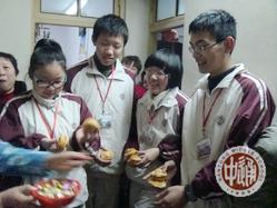 【编者按】活动很温馨,照片虽是手机拍摄的但很有情趣。给两个建议:1、活动报道的配图尽量选用互动场面的镜头;2、来稿务必注明图文作者姓名。此外,活动日期离重阳节有40天了,时令为“小雪”后一天,文中写“秋意”、“九九重阳”不妥,望以后注意。以下为高一5班来稿全文。