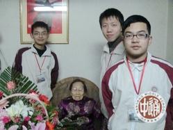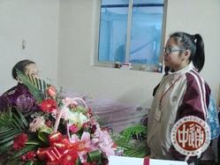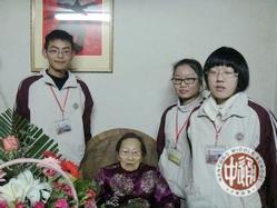怀着一种敬仰之情,我们走进屋子里,看到这位端坐在藤椅上的老奶奶,才发现老人的精神格外的好。她站起来,和同学们握手谈心,还询问我们学习苦不苦,非常感谢能来给她祝寿。