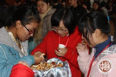 充满异域风情的藏袍也吸引了很多汉族同学的目光,当他们亲身试穿后,都忍不住拍照留念。而那一杯杯热气腾腾的酥油茶、一颗颗酸甜可口的奶渣、一件件藏区手工饰品更是让到场的同学们感到回味无穷。