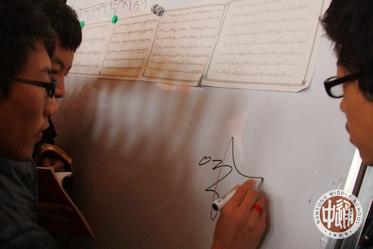 活动在独具特色的锅庄舞中正式开始。汉族同学们跟着藏族学生欢腾的舞步翩翩起舞,舞场上跃动着青春的活力,充满了诚挚的情感和幸福的味道。 藏文书法的展示得到了汉族同学的赞赏,那行云流水般的笔触蕴含着藏族文化特有的古朴与灵动。当汉族同学看到自己的名字被书写成陌生但却漂亮的藏文时,都欣喜的表示要珍藏起这份特殊的礼物。 |