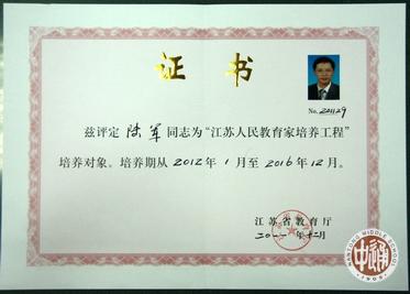 12月5日,在省教育厅举行的“江苏人民教育家培养工程”第二期培养对象开班典礼上,沈健厅长为第二批培养对象颁发了证书。我校教科处主任、江苏省特级教师陆军被评为第二批“江苏省人民教育家培养工程”培养对象,培养期从2012年1月至2016年12月。 此前,我校特级教师陈杰和蒋维两位老师于2009年被获为首批培养对象。 |