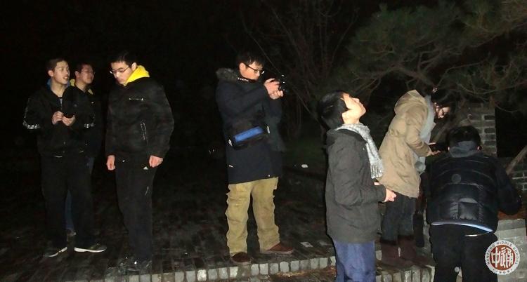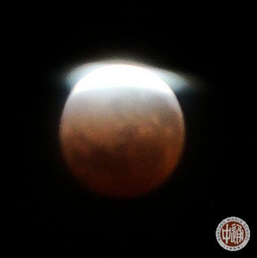 这些天,楸叶摄影协会高三分会大帅哥耿磊同学(就是今年高一军训随军记者团的那个团长)正忙着修改协会章程,12月10晚仍不放过机会,与一群通中在校生天文摄影爱好者们守在北极阁高台上,拍下了几十张月全食照片,精选了下面两张发来编辑部,得意之情溢于言表地留言称:“红月亮戴帽”稍纵即逝,不容易拍到的耶!