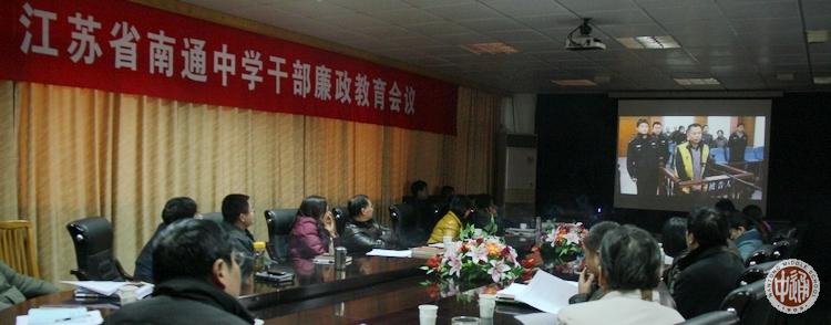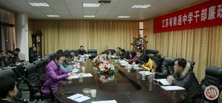 12月30日上午,我校召开干部廉政教育会议,全体中层以上干部和后勤处各关键岗位负责人出席,党委书记韩明飞主持。会上,全体干部观看了市纪检委主编的《江海警钟》警示片,听取了党委委员副校长刘忠保代表党委作的《清正廉洁,警钟长鸣,为南通中学各项事业科学健康发展而努力奋斗》专题报告。