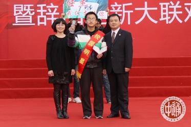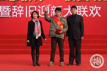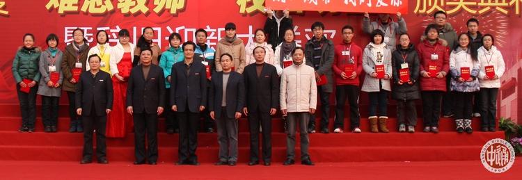 市教育局王笑君、张建跃和我校姚天勇、韩明飞、刘忠保、许建平、沈惠祥等领导为“校园明星提名奖”获得者颁奖。以下是颁奖领导与获奖者合影。