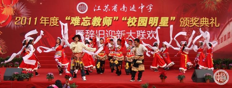 江苏省南通中学2011年度“难忘教师”“校园明星”颁奖典礼暨辞旧迎新大联欢到此结束。主办:校长室、校党委、校关工委。主持人:高一年级2班陆昳睿和张家豪、3班高涵、15班朱沛林等4位同学。
