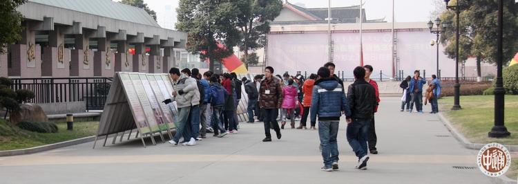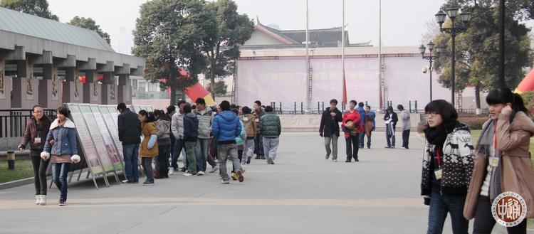 上图是校园内诚恒大道南侧的节约水资源宣传牌,以下两图是同学们课间正在浏览宣传牌的镜头。