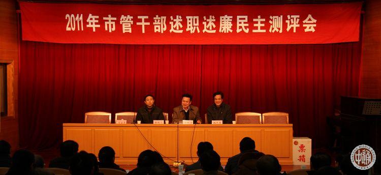 1月8日上午,我校2011年市管干部述职述廉民主测评会在图书馆报告厅召开,教代会全体教工代表和特邀代表出席并以无记名投票方式参加监督测评。市教育局局长兼局考核工作领导小组组长郭毅浩和领导小组成员局纪工委副书记冯斌、局人事处处长张卫娟、局体卫艺处处长虞谷生等出席见证全过程。