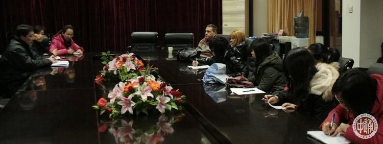 高二和高一年级各学科备课组6日继续备课交流。下图国际教育部外籍老师正认真参加集体备课活动。