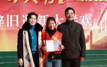 获得“勤奉之星”称号的是高二2班童安琪同学(左下),给童安琪颁奖的是南通中学教务处副主任、南通市教育局直属学校学科带头人刘伟忠老师和南通市中青年科学技术带头人、市学科带头人、南通中学语文教研室副主任徐晓岚老师。
