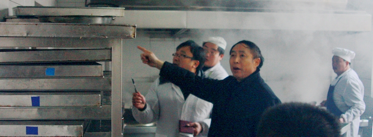 在近期严防H1N1甲流传染的同时,我校始终没有松懈对师生饮食卫生的监控,并未雨绸缪地于1月8日上午抽查了全部三所食堂。 检查组由副校长韩明飞带队,党政办主任成平、后勤处副主任刘兴邦和医务室人员黄勇组成。上图和右图检查组在厨房操作间现场检查保持食品新鲜和生熟分置制度执行情况;下图检查营业执照、卫生许可证等是否过期、查验采购记录和质量证明是否其齐全有效。 |