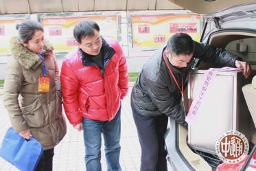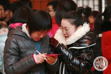 下图:教工领票处,校党委书记韩明飞(中,侧影者)现场巡视。