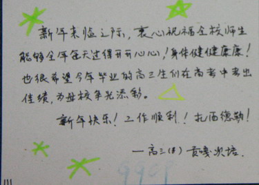 蓝蓝的雅鲁藏布江象征着中华文明源远流长,巍巍喜马拉雅山宣示着各族人民永远团结坚强。值此双节大喜之日,来自雪山之巅的西藏学生将自己的亲笔手书手绘激情献给母校南通中学每个亲爱的老师和每个亲爱的同学。