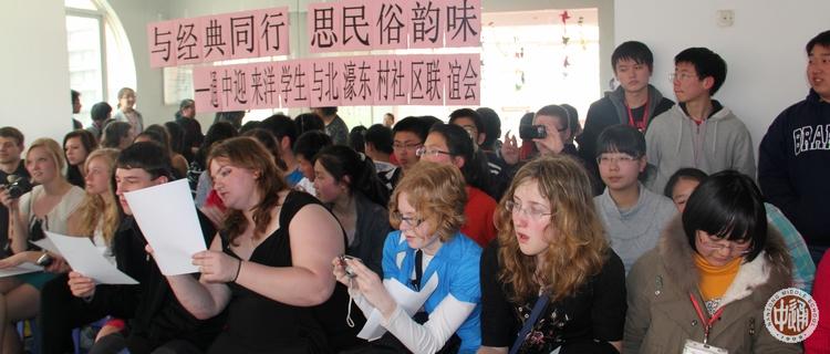 以下各图是3月27日下午马科姆郡的孩子们在通中结对社区北濠东村参加社区活动,内容包括学玩中国杂耍陀螺、学唱京剧等。美国孩子在中国社区与居民一起体验中国民俗韵味。