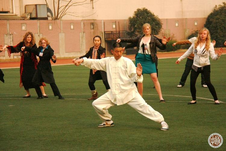 自从马科姆郡中学生访问团来到通中,这些日子每天清晨7:20,操场上多了一道亮丽的景观:美国孩子们兴致勃勃地跟着我校教务处丛建平老师学习中国功夫太极拳。