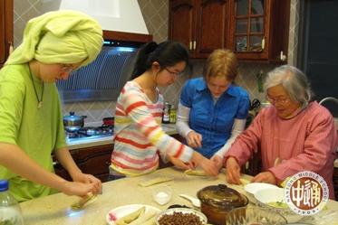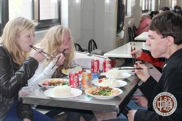 来访的美国孩子还与通中学生一起同堂听课,相关课程包括物理、历史、中国画、民乐、动画初步、通用技术、毽球、皮筋操、扎染工艺、中国烹饪以及各种类型的研究性学习。 以下各图中除了上课外,美国孩子还参观了学校图书馆和动物标本馆,在学校食堂学习用筷子进餐,与通中学生一起放风筝、做园艺。 最后两图是住在我校高一年级陈雪琛同学家的美国姑娘跟奶奶学包春卷、晚饭后休息画画。 |