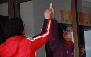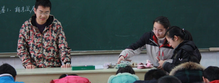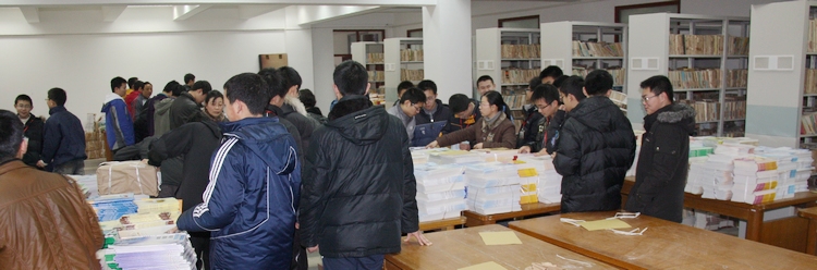 8:30左右,各班开始分发课本和练习卷。左图这位班主任正与学生个别谈话,下图中的班主任正按部就班地开班会。 左下图高三年级正在进行寒假作业检测,透过教室窗玻璃我们已经感受到高考前学习的紧张气氛。 上述所有活动均同时或穿插进行,顺序和节奏由各班自行安排,一切都有条不紊。 |