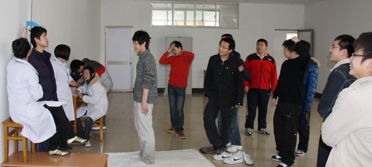 我市2010年普通高校招生体检工作已于近日展开,我校高三年级学生于3月25日在市招办接受体检。以下各图是体检现场。