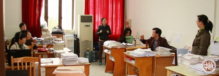 4月17日起,市教育局组织市教研中心教研员对市直中学高三年级教学情况作专题调研。18日上午,由市局副局长王笑君带队的调研组来我校调研。调研活动包括听课、备课组座谈和指导、与校领导交流和大会交流等内容。 右图我校副校长许建平正向局领导汇报高三总体教学情况。以下各图是教研员听课的部分镜头。 |