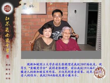 黄馥女士毕业于1931年,是我校首批三名女子学生之一,现居住新加坡。上述奖金设立于2005年。今年恰逢黄馥女士百岁华诞。因年事已高,她特地委托侄子黄小旋先生(下图左三)前来代其颁奖。