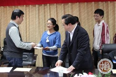 本届黄馥奖学金获奖名单详见上图左下页面。下图是出席颁奖仪式的黄小旋先生、我校校长助理沈惠祥、学生处主任杨志冲和主任助理潘雪峰与获奖同学合影。