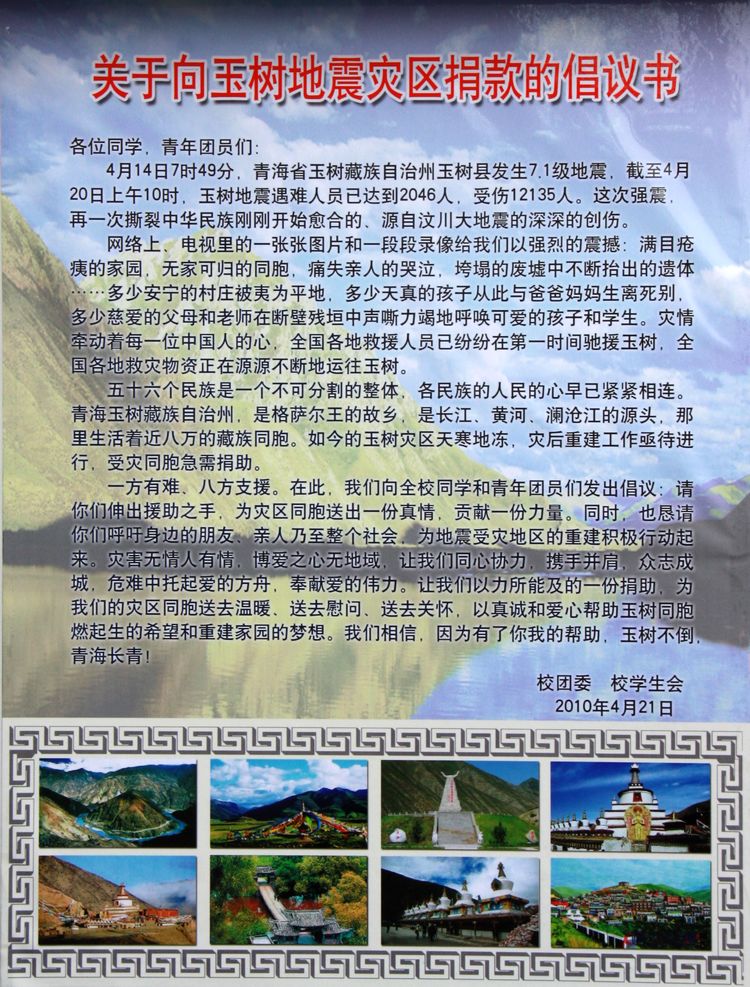 通中师生向千万里外青藏高原的同胞呼唤:我们都是玉树人!