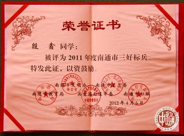 近日,南通市文明办、南通市关工委、南通市教育局、共青团南通市委、南通市妇联联合表彰2011年度南通市三好标兵。我校高三12班殷鑫同学被评为2011年度南通市三好标兵。 在家庭做好孩子,在学校做好学生,在社会做好公民,这是家庭和社会对新时代青年的要求和期冀。殷鑫同学凭借其全面发展的综合素质、踏实肯干的工作作风、亲切友好的人格魅力、敢于担当的道德风范、赢得了老师同学的一致称誉和社会的积极认可。 |