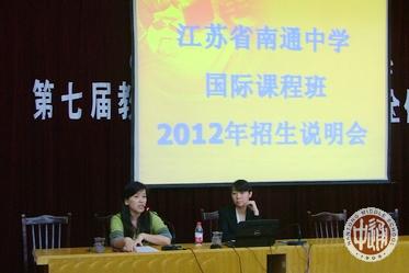 5月20日上午在我校科学楼三楼报告厅召开了2012年南通中学美国高中课程(+AP)班招生说明会,大约有300多名家长和学生参加了会议,并拿到了一份《通中报》特刊。特刊记录了我校美国课程班成立两年来的发展状况和取得的成绩,以及对国际课程班发展的一些思考和感悟。 招生说明会由国际教育部滕旻彦主任主持,会议内容包括美国高中课程(+AP课程)介绍和国际课程班管理介绍两部分。会后,家长们还就志愿填报、录取人数、测试方式、中方基础课程设置等问题与招生老师进行咨询。 |