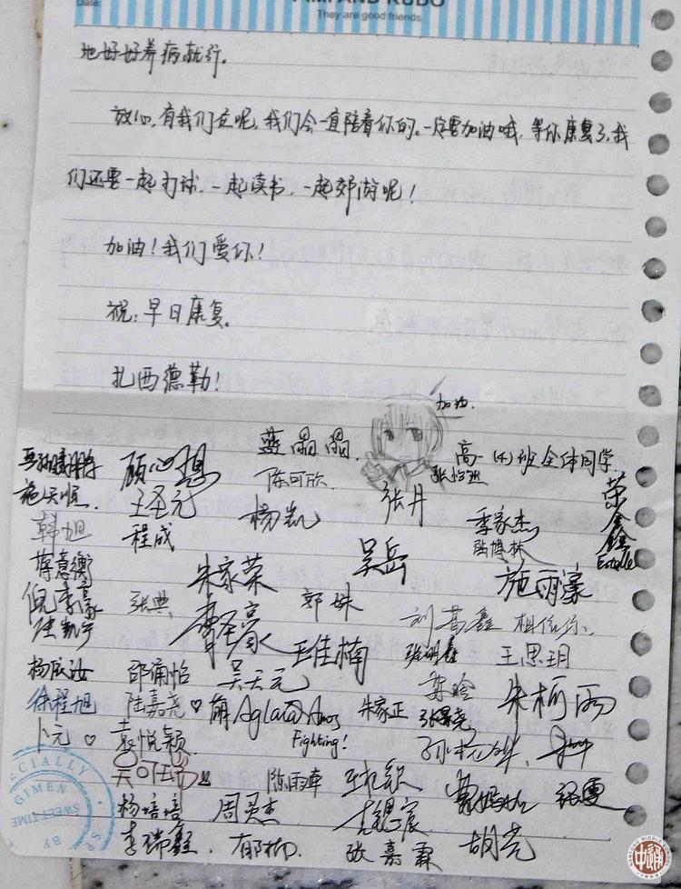5月19日下午,学生会高一分会五名成员及团委老师前往通大附院看望身患骨癌的嘎玛旦增同学,带去了全校同学写给他的慰问信,此外还有华西村的老村长、通师二附小朋友以及一些陌生人写来的信。这些信包含着所有人对他的浓浓关心,嘎玛同学的脸上洋溢起了满足的微笑。