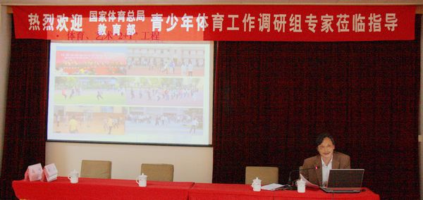 调研工作公分四个组进行,其中的青少年学校体育专题组于4月27日下午来我校调研。我校副校长许建平从以下五个方面向调研组全面汇报了近年来我校体育工作情况:1、探索体育教学改革、主动应对新课程;2、完善课程实施条件,全力保障新课程;3、开展“2+1”文体工程,努力深化新课程;4、建设校园体育文化,全面提升新课程;5、发挥传统项目学校优势,有益补充新课程。