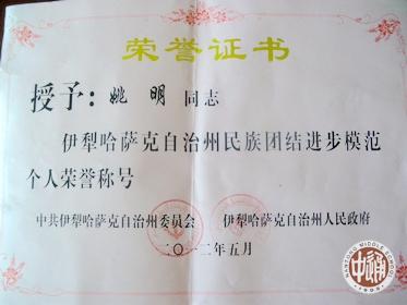 5月25日,新疆自治区伊犁哈萨克自治州第五次民族团结进步表彰大会在伊犁宾馆礼堂隆重举行,90名自治州民族团结进步模范个人受到表彰。在受表彰的个人中有两名援疆干部,其中我校援疆干部姚明老师作为无私奉献、扶贫济困的优秀援疆干部受到表彰,被授予伊犁哈萨克自治州民族团结进步模范个人荣誉称号。