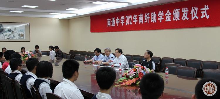 6月4日下午,我校2012年南纤助学金颁发仪式在敬铭楼第一会议室举行。该助学金基金由南通醋酸纤维有限公司捐赠设立,每年捐赠20万元人民币到学校帐户,定向用于奖励品学兼优的优秀学生和资助品学兼优的经济困难学生。