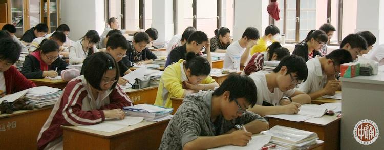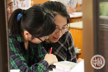 6月5日星期二,高三年级在校复习的最后一天。昨天星期一,高一年级的周以柔和杨馨平同学国旗下演讲的主题是预祝高三学长高考好运(右图)。明天同学们将到相关的高考考场试座。接下来连续3天高考。这考前最后的复习课,各班教室里师生一如既往地沉着应对:有老师给全班集体讲解的,有全班学生自主复习的,有学生向老师个别咨询的,还有学生小组讨论和个别交流的。 以下各图是今天高三年级教室掠影。 |