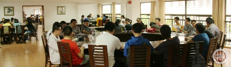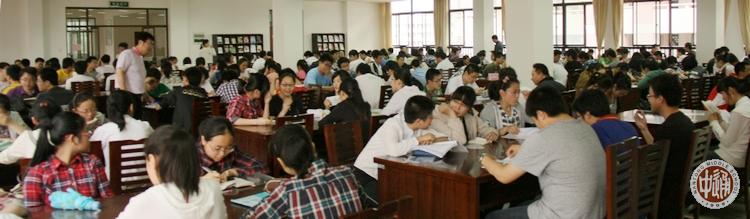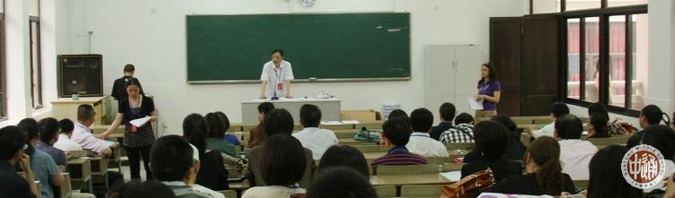 下午2:00考点领导小组现场工作会议再次检查确认了考点准备工作情况;下午3:00各工作小组进入岗位,3:30监考员到各主考室集中(上图),同时考生陆续进入考点指定地点休息。
