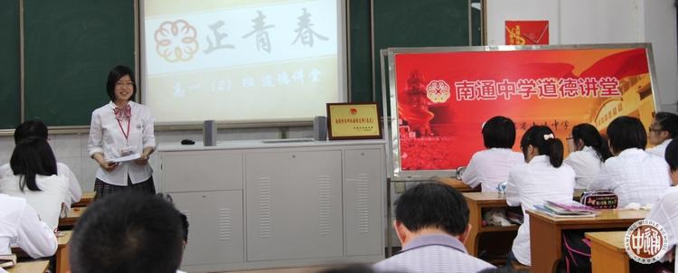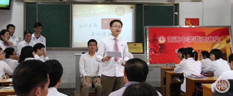 为贯彻落实南通市文明办关于在全市开展“道德讲堂”建设活动的实施意见,6月11日,作为南通市五四红旗团支部、南通市道德讲堂第一课示范班级,我校高一2班举办了一堂别开生面的班会课。 本次道德讲堂的主题是“正青春”,由高一学生分会主席高一2班班长陆昳睿主持,班主任杨建楠老师也在道德讲堂上向同学们提出了殷切希望。本年级班主任、校党委书记、校关工委领导、校工会主席、校学生处干部听课并点评。 |