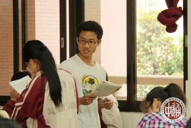 下图是高二13班女生陈露与江子恬正合作讲解李清照的《醉花阴》,温婉细腻;右上图是该班男生朱成亦讲授岳飞名作《满江红-写怀》,慷慨激昂。