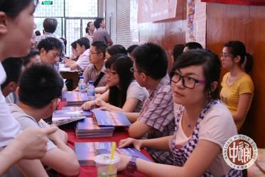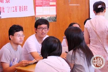 咨询会举办了一整天。往年录取我校毕业生较多的学校纷纷将在读的我校校友安排在招生工作组。上图南京大学招生组左二男生是我校2008届校友张琦(就是此前南大“诺贝尔奖有约”活动中在校生唯一获得发言资格者),右图西交利物浦大学招生组右前女生是我校2011届校友余晨梓,下图东南大学招生组左二男生是我校2011届校友季一。 此外,意大利马可波罗项目也于当天上午在我校科学楼报考厅举办了专场招生咨询会(右下图)。 |