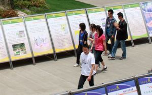 为迎接世界环境日,我校在校园内举办了“节水知识展”。展览介绍了全球和我国水资源分布占用情况,展示了各种生产和生活节水技术,号召全校师生从节水开始为改善环境作出我们应有的贡献。