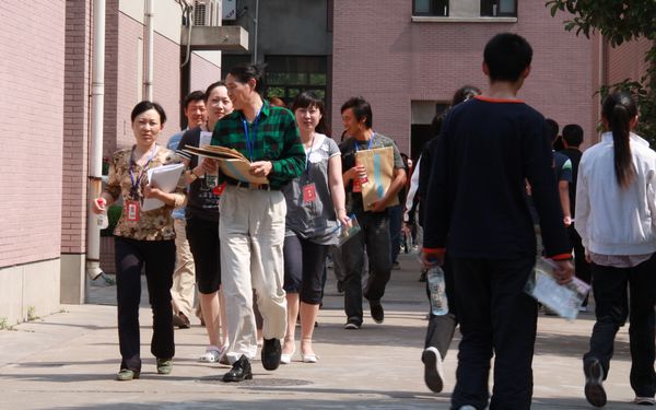 考生考前一小时进入考点并在指定休息地点做考试准备。我校理科考生准备地点安排在敬铭楼报告厅。下图我校高三年级老师正在巡视检查我校考生准备情况并随时接受咨询。