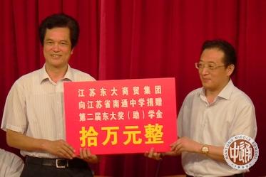 东大集团是一家多元化发展的企业,主要从事市场开发、商贸物流、超市连锁、商业地产及科技研发等领域的业务拓展。公司组建于1996年,现拥有东大商贸城、东大科技园、好亿莱家居广场、好亿莱商业大厦、美奥钢材交易市场、东大烟酒连锁及喜购超市连锁等企业,公司总资产达10亿元以上。多次获得“全国五十强市场”、“省五星级企业”及“南通市十强流通市场”等荣誉称号。 左图颁发仪式后姚天勇与录取北大的周蜜、蔡一能等同学聊天,鼓励他们在学业上获得更大进步。 |