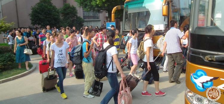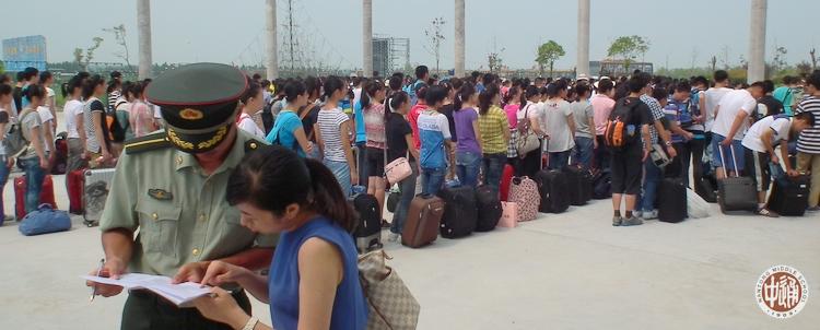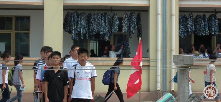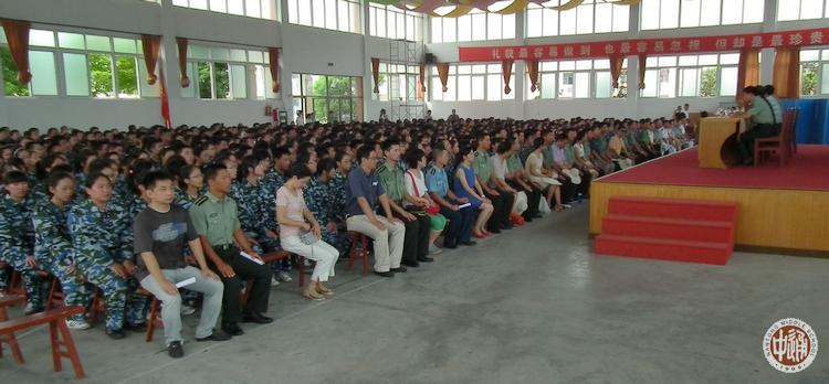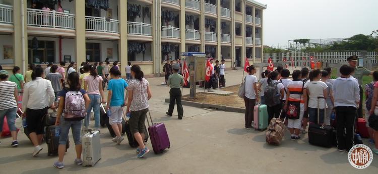 19日上午8:00,17个班800余名新生在各班教室集中。班主任作最后检查后,全体新生于8:30登车,9:00车队出发,10:40车队抵达基地。班主任与教官交接名单后,全体新生即按班级顺序依次编为第1-17中队。