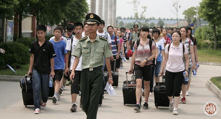 【编者按】今天刊发正在军训的高一2、4、6、9、16五个班的6篇来稿,每篇来稿文字下面配发的是本班学员军训的照片。其他班级的照片请看下一篇报道,也可到学生记者团报道本次军训的网络空间中查阅(网址见本报道末尾,下图是昨天入营时教官带领新学员到宿舍)。