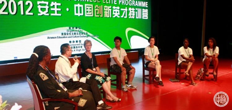 7月23~30日,由美国安生文教交流基金会主办、北京第四中学协办的“2012安生·中国创新英才特训营”成功举行。来自中国百多所顶尖学校的235名高中生及25名来自美国的优秀中学生(包括13位美国总统学者奖获得者及10位来自美国优秀私立学校的学生)齐聚北京四中。我校高三年级孙培根、刘李阳等等同学参加了此次活动。 |