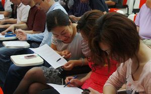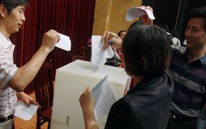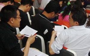 全体教工根据中共中央《党政领导干部选拔任用工作条例》规定的基本条件进行推选。推选采用无记名投票方式,会场人手一份空白推选表。推选表共设两栏,其中正职后备干部推荐人选栏限填2人,副职后备干部推荐人选栏限填6人。以下各图是会场填写推选表和投票镜头。 |