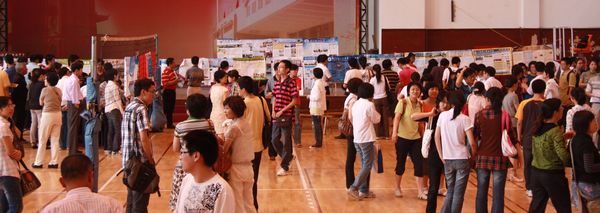 会后各高校招生人员齐聚我校体育馆举办招生咨询会。咨询会将延续至27日(周日)下午。以下各图是咨询会现场。 |