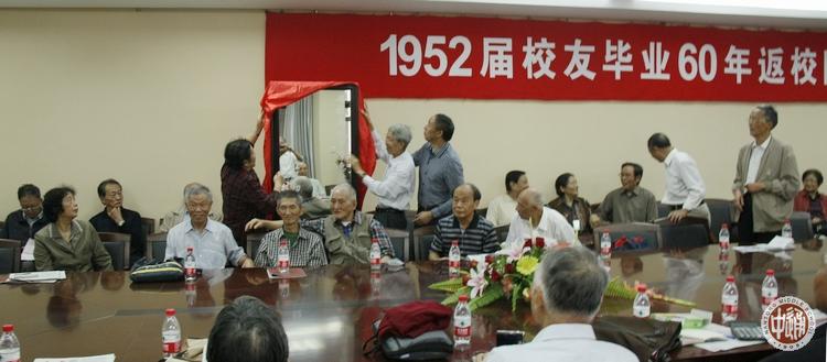 下图韩明飞代表学校接受校友赠送的正衣冠镜,感谢校友以此表达对母校后辈学子牢记“诚恒”校训保持优良学风的厚望。